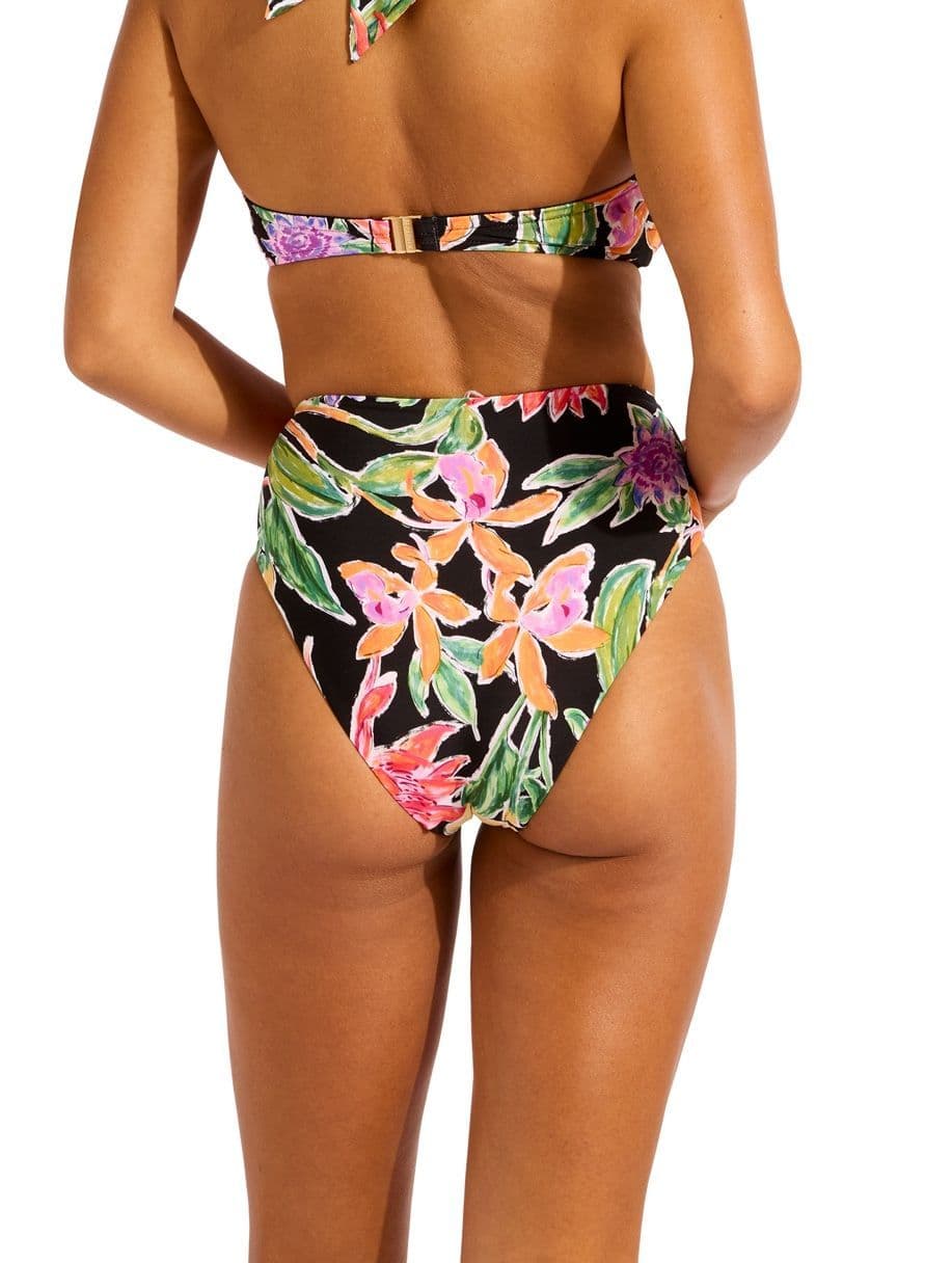 Seafolly Hot House Flowers High Waist Wrap Front Bikini Brief - Black